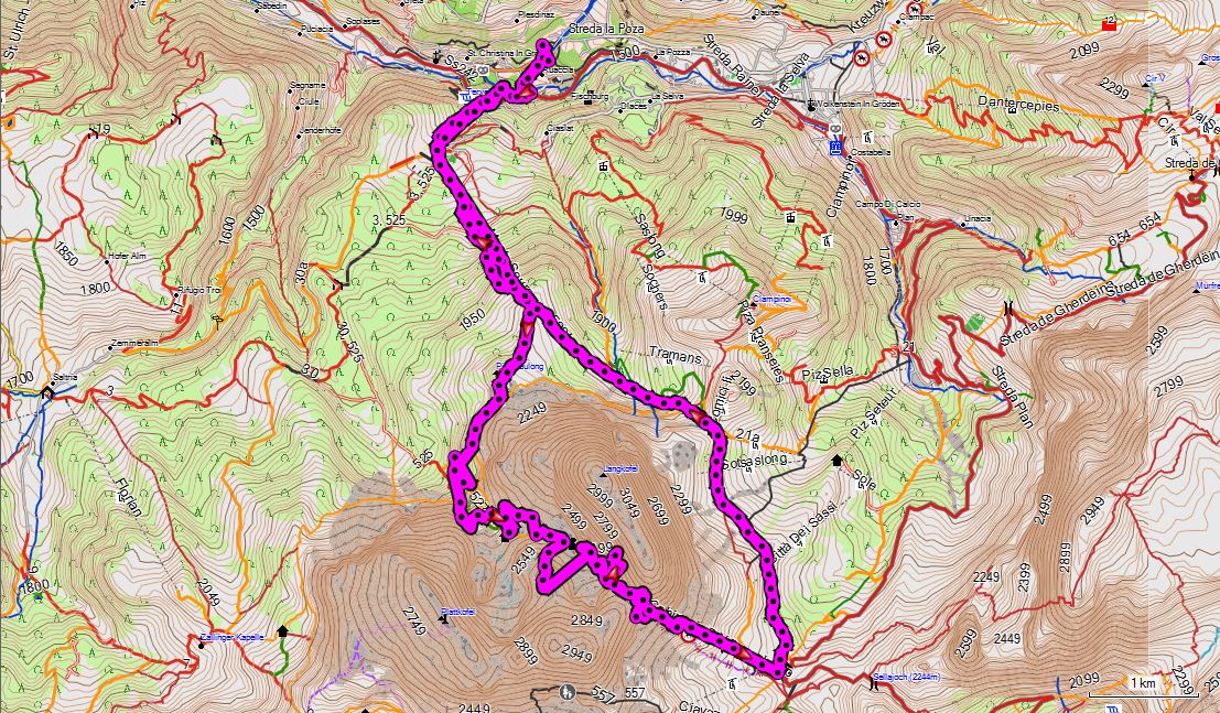 Aus meiner Sicht eines der komfortabelsten aber auch schönsten Wandergebiete der Alpen. Das Tal ist sehr gut erschlossen - mit allen Vor- und Nachteilen. Es wird immer noch mehr gebaut, dadurch wird das wunderschöne Tal sicher nicht noch schöner! Aber bisher fügen sich die Lifte relativ gut in die Landschaft ein. Die Busverbindungen sind hervorragend, so dass sich viele Streckenwanderungen leicht organisieren lassen. Landschaftlich wird das Tal von den prominenten Gipfeln des Langkofel, Plattkofel und Schlern sowie den steilen Zähnen der Geislerspitzen dominiert. Alles, was man sich unter Dolomiten vorstellt findet man hier. Die Einkehrmöglichkeiten auf gemütlichen kleinen Almem gehören zu den nettesten in den Alpen. Wer weniger sportliche Ambitionen hat wandert auf der moderat ebenen Seiseralm oder nutzt die vielen Lifte, die sich zusammen mit den Bussen mit der Grödnercard zu einem Pauschalpreis einsetzen lassen.