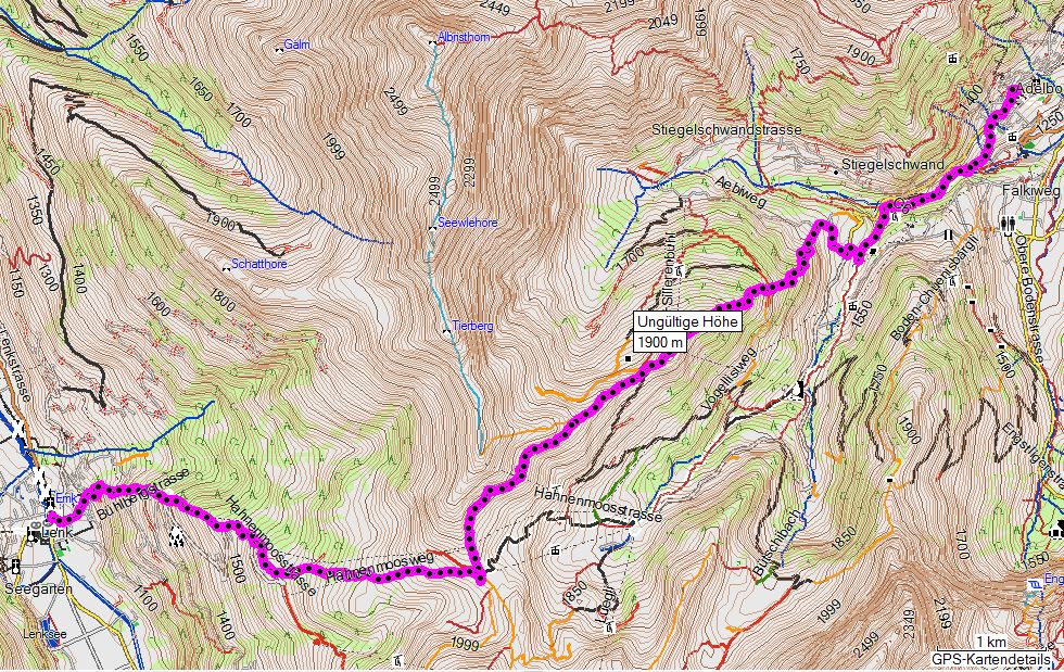 | Start - Ziel | Aufstieg | Abstieg | Distanz | Gehzeit |