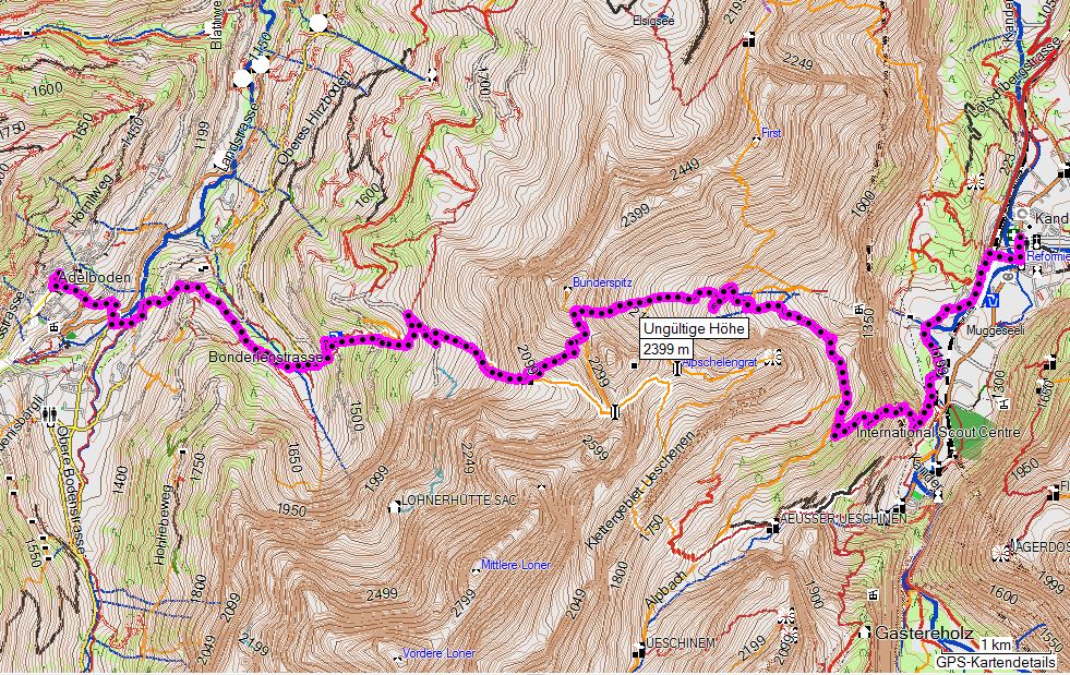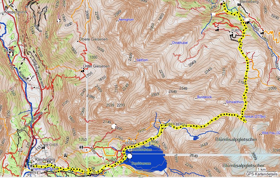 | Der Bärentrek ist auch als Hintere Gasse bekannt und bildet eine Teilstrecke der Alpenpassroute. Hier erlebt der Bergwanderer ein Trekking im Berner Oberland zu Füßen von Eiger, Mönch und Jungfrau. Besonders eindrucksvoll ist die Route, weil man sich überwiegend auf der Grenze zwischen spektakulären eisigen Gipfeln und lieblicher Almen- und Waldlandschaft bewegt. Dazwischen liegen berühmte Bergsteigerdörfer und klassische Tourismusorte wie Grindelwald, Kandersteg, Adelboden oder Lenk. Die Pässe heißen z.B. Große Scheidegg und Kleine Scheidegg, Sefinenfurgge odere Hohtürli. Der Wander hat die Wahl, oben in den Bergen in Hütten, oder unten im Tal in Gasthöfen und Hotels zu übernachten. Die Route kreuzt mehrere Täler, so dass es in jedem Fall viel Auf und Ab zu bewältigen gibt. Dadurch ist die Route aber besonders abwechslungsreich und führt von den malerischen Schweizer Tälern und geschichtsträchtigen Orten bis hinauf auf Augenhöhe mit den Gletschern. Letztere werden nicht gequert, Seil, Gurt und Steigeisen sind also i.d.R. nicht erforderlich. Beste Zeit: Weil in der Höhe noch länger Schnee liegt eignet sich der Zeitraum ab Ende Juni bis in den September hinein am besten. Aufgrund der großen Höhen bis an die 3000 m muss man bei schlechtem Wetter aber auch im Sommer mit Kälte oder sogar Schnee rechnen. Die GPS-Daten vom Bärentrek (Download) findest Du unten bei Etappen Ort > Ort. Etwas geschmeidiger sind vielleicht die Links in meinem Tourenbericht zum Bärentrek, die auf die Seite von Outdooractive führen und dort die Etappen auf der Karte mit einem Höhenprofil und den Tourdaten präsentieren. Wechselkurs: Der Franken und der Euro lassen sich heute (2022) pi mal Daumen mit 1 zu 1 umrechnen.