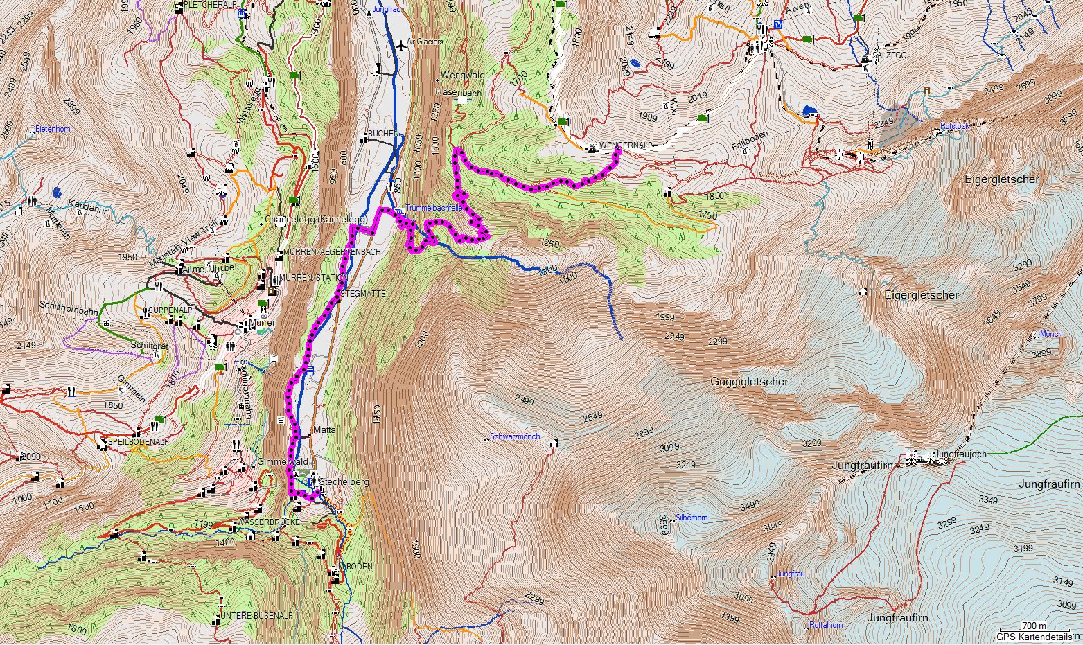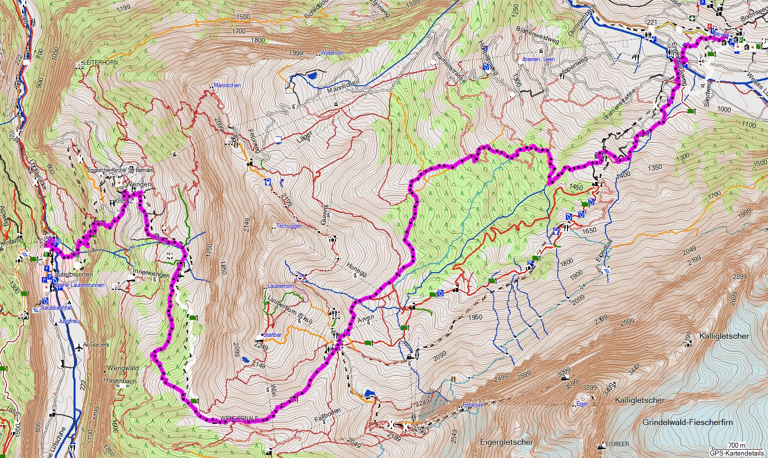 | Kleine Scheidegg - Gimmelwald | 660 | 1345 | 13.1 | 5’00 |
