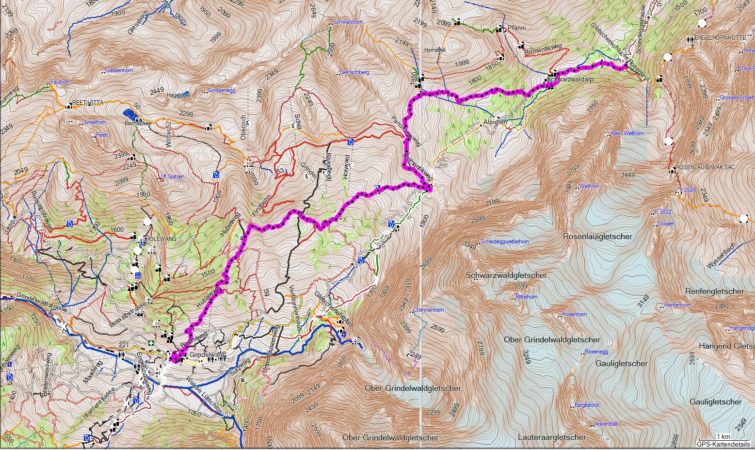 Rosenlaui - Schwarzwaldalp, bis Große Scheidegg in der Nähe der Straße.