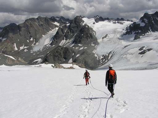 | Die Silvretta liegt in den westlichen Ostalpen. Auf dem Gipfel der Dreiländerspitze stoßen die Gebiete von Tirol, Vorarlberg und Graubünden zusammen. Die Silvretta besitzt viele Dreitausender. Vor allem auf der Nordseite in Österreich sowie in der Schweiz nördlich des Flüelapasses gibt es eine Vielzahl größerer und kleinerer Gletscher. Der größere Teil des Gebiets befindet sich in der Schweiz. Der höchste Gipfel der Silvretta, der Piz Linard, befindet sich ebenfalls in der Schweiz und kann nur von dort bestiegen werden. Die Silvretta hat zwei Gesichter: Während die österreichische Nordseite ein beliebtes Wandergebiet mit guter Hütteninfrastruktur darstellt, sind große Teile des Schweizer Gebiets recht einsam. Der österreichische Bereich der Silvretta ist der bei Bergsteigern und Touristen weitaus bekanntere. Dies ist auch die bergsteigerische Paradeseite mit der größten Vergletscherung und einem alpineren Erscheinungsbild. Fast alle bewirtschafteten Alpenvereinshütten konzentrieren sich auf den österreichischen Teil. Viele Gipfel können ideal als Überschreitung zwischen zwei Hütten begangen werden. Nur wenige Gipfel bieten auf den Normalrouten ernsthafte alpinistische Schwierigkeiten. Die direkten Hüttenübergänge sind auch bei weniger idealen Verhältnissen meist problemlos möglich. Die Route "Blaue Silvretta" bietet sich für eine mehrtägige Haute-Route von Hütte zu Hütte an. Die Kombinationsmöglichkeiten sind vielfältig.