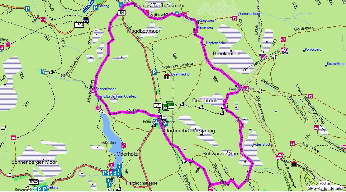 - Route: Oderbrück - Achtermann - Rotes Bruch - Bodebruch - Dreieckiger Pfahl - Torfhaus - Märchenweg - Oderteich - Oderbrück