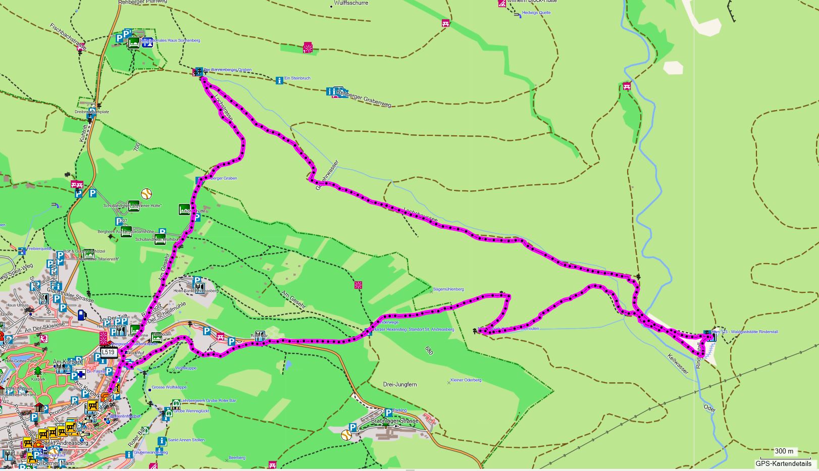 - Start: Parkplatz am Kurhaus (Café, Restaurant) Sankt Andreasberg.