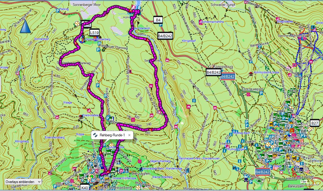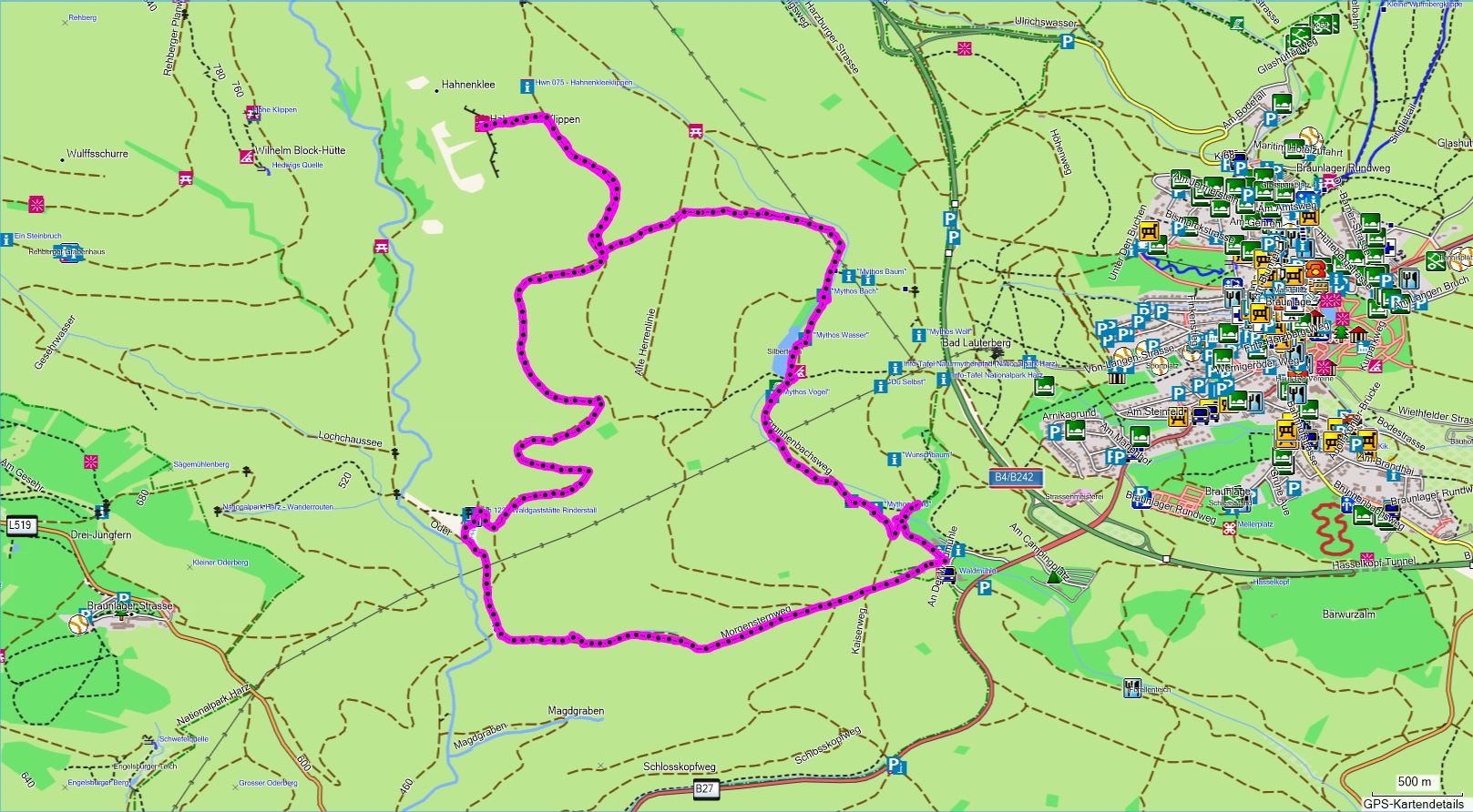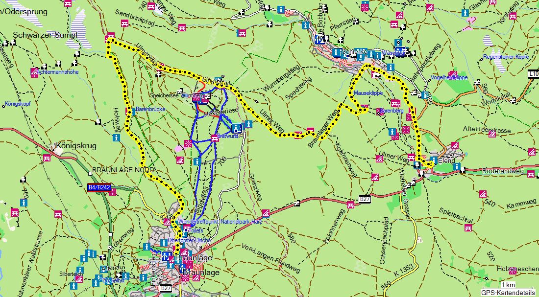 - Start am Parkplatz/Bushaltestelle an der B4 (Braunlage - Bad Harzburg).