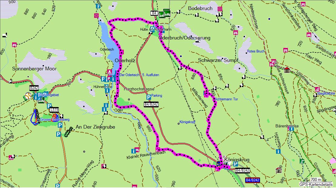 - Route: Königskrug - Königskruger Planweg - Oderteich Ostseite - Oderbrück - Kaiserweg - Achtermann - Königskrug