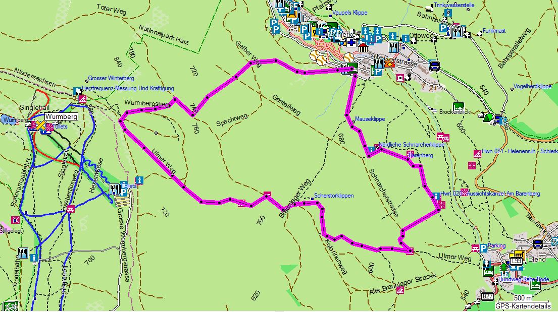 ... der selbe Weg mit Verlängerung von Schierke nach Elend: