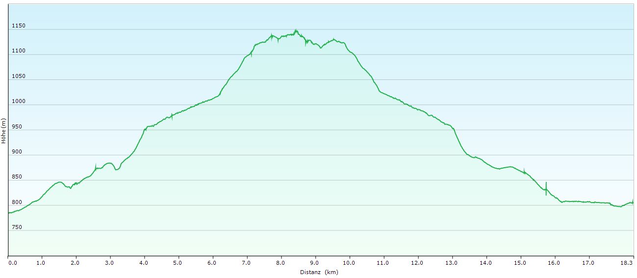 Streckenlänge: ca. 8 km, Niedrigster Punkt: 800 m (Torfhaus), Höchster Punkt: 1.141 m (Brocken).
