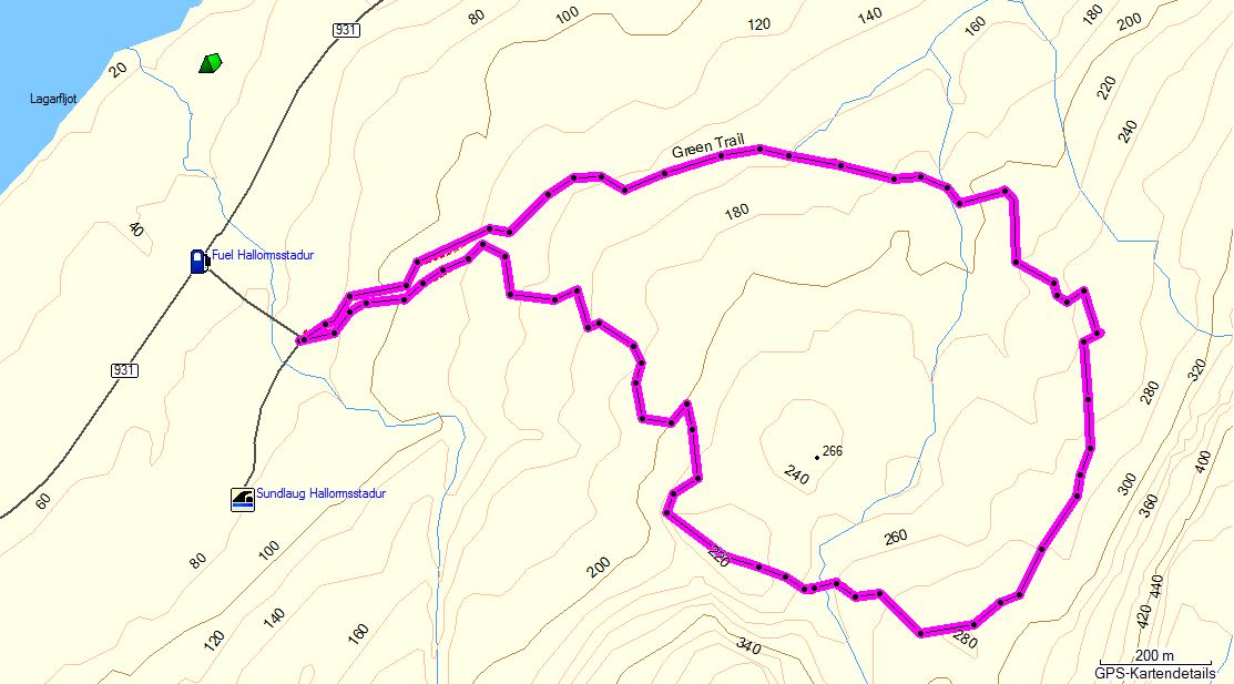 Von der Jugendherberge geht es die Straße weiter links in den Fjord, dem ersten Jeeptrail nach links oben folgen und dann immer links halten bis zum ersten Wasserfall, dem Selafoss. (nicht mehr beschildert). Danach immer am Wasserlauf entlang den anderen Wasserfällen entgegen. Es gibt einen mit Pflöcken markierten Weg, doch der beste und trockenste Pfad geht immer nahe am Bachufer entlang. Die nächsten Wasserfälle haben noch Schilder, Haifoss und Lilyfoss. Wenn man oberhalb dieser steht, sieht man auch schon die nächsten. So geht das eine ganze Weile weiter bis man nach ca. 3 Stunden am Vestdalvatn angekommen ist. Der See liegt auf 568 Höhenmeter und ist der Endpunkt der Tour. Von dort geht es wieder den selben Weg zurück, von daher ist es wichtig, sich auf dem Hinweg die Strecke einzuprägen.