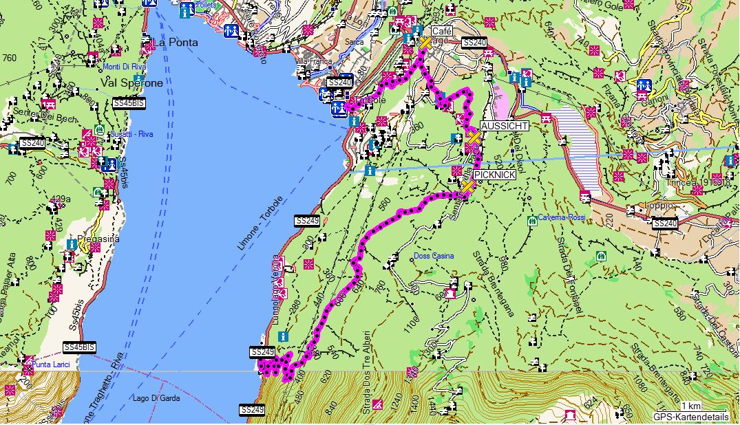 Wenn man über die Römerstraße von Nago direkt nach Torbole absteigt spart man 0:45 h.
