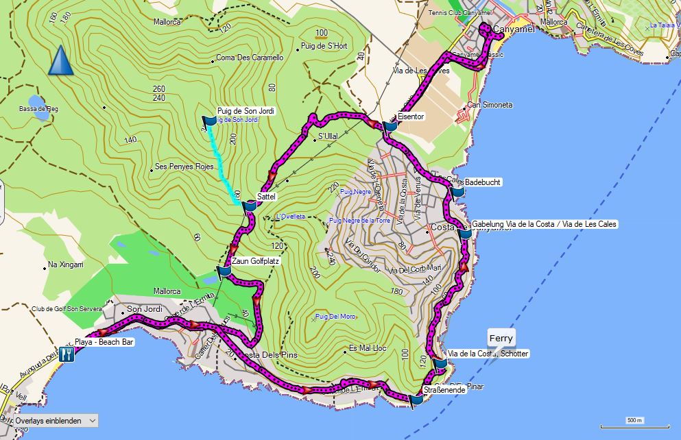 - 10:00 Start Hotel Canyamel Park, Richtung Südwesten entlang der Via de les Coves