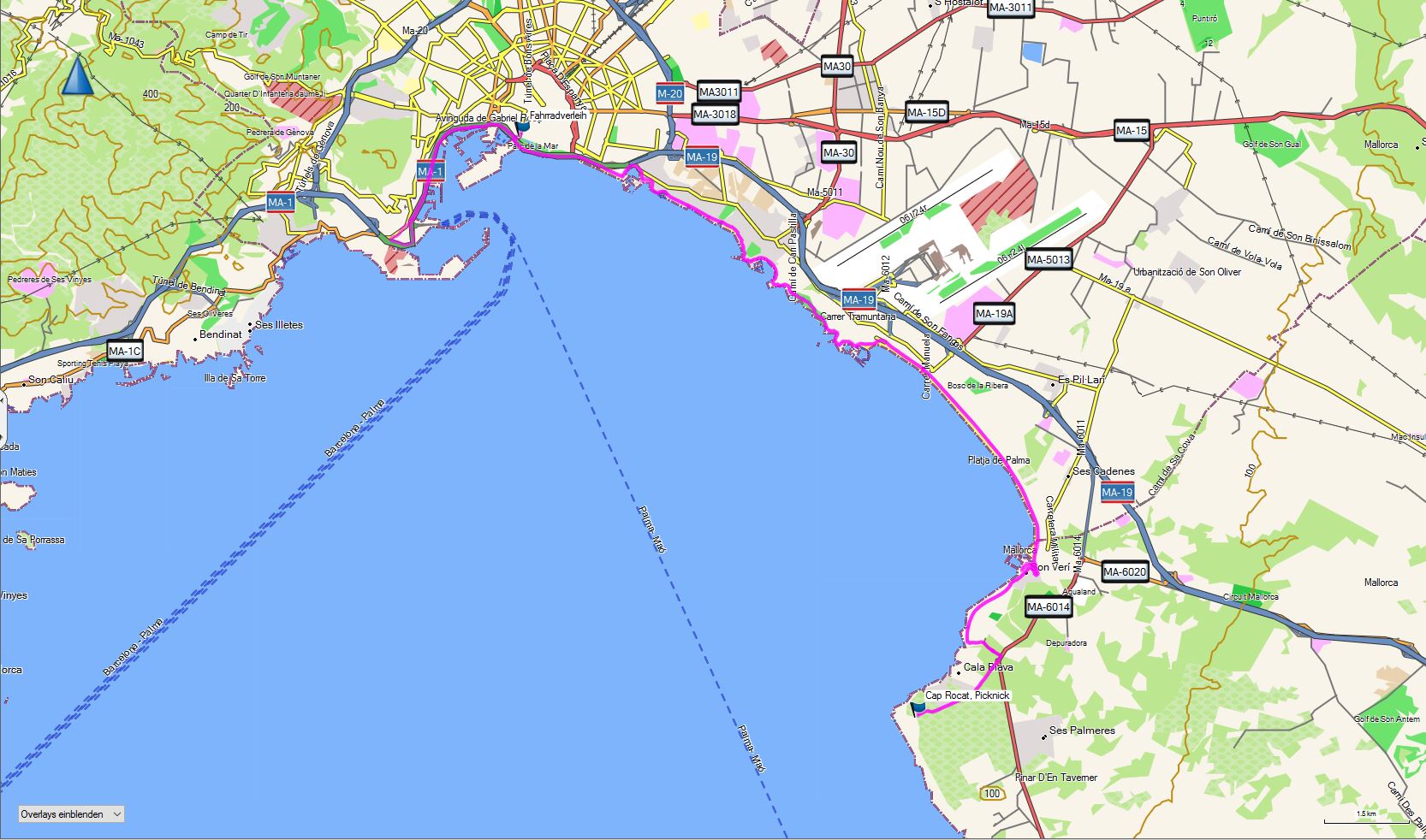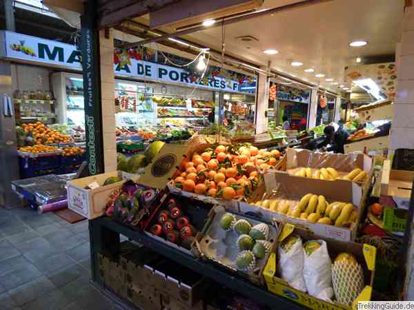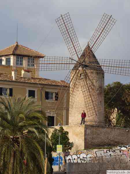 Start: Plaça d´Espanya... mit Bahnhof & Busbahnhof, Tourist Info (Stadtplan holen!) Gegenüber vom Bahnhof (viele Straßencafés) in die Fußgängerzone (Porta Pintada) Carrer de los Olmos: links Kirche Sta. Catalina de Sena, rechts Kirche des Hospital Militar Gleich links hinein in die Carrer Sant Miquel Markthalle:Etwas weiter liegt links die Plaza Olivar (Markthalle, vor allem Vormittags sehenswert) zurück auf die Sant Miquel, hier nach links weiter: links: Kirche Sant Antoni Abad schräg gegenüber: Platz und Kirche Sant Miquel Weitergehend auf der rechten Seite liegt ein renovierter Stadtpalast mit dem Museu d`Art Espanyol Contemporari Fundación March (Carrer Sant Miquel 5, spanische Gegenwartskunst, Dalí, Miró, Picasso ...). Plaza Mayor:Kurz danach: Plaça Major, Cafés, Restaurants, Einkaufszentrum (unter dem Platz, u.a. Souveniers, Leder, Textilien), Kleinkünstler und Strassenmusikanten. Weiter durch die Carrer Colón zur ... Plaça Court mit dem Rathaus der Stadt (Bau 1598 - 1680). Aus Richtung Placa Major kommend links durch die Carrer Cadena zur ... ... ältesten Kirche Mallorcas, Església de Santa Eulàlia. Bau 13.-14. Jh., gotisch, Schutzpatronin Barcelonas. In den Gassen hinter der Kirche lag das Judenviertel. Auf dem Platz Santa Eulalia vor der Kirche viele Cafés. In der ursprünglichen Gehrichtung weiter zur Placa San Francisco mit Klosterkirche der Franziskaner (1281 auf den Fundamenten einer Moschee erbaut). Banys Arabs : Von den 5 arabischen Bädern aus der Zeit der maurischen Herrschaft von 902-1229 ist nur noch dieses Bad in Resten erhalten.