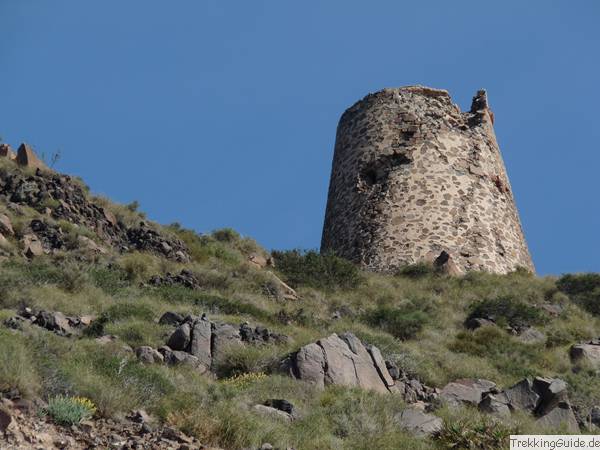 Im 16. Jahrhundert wurden an der spanischen Küste viele Wachtürme gebaut. Sie unterstützten die Verteidigung der küstennahen Bauern- und Fischerdörfer und der kleinen Städte. Diese Zone hatte unter vielen Piratenüberfällen zu leiden. Die Piraten konnten sich hier relativ risikolos mit Wasser und Proviant versorgen. Außerdem wurden bei vielen Überfällen die örtlichen Arbeitskräfte als Sklaven mit an Bord genommen. Wirtschaftlicher Niedergang war die Folge. So wurde von den spanischen Herrschern ein System von Küstenwachtürmen errichtet. Diese standen in Sichtweite zueinander und konnten bei Gefahr die Ankunft von Piraten an den nächsten Turm und weiter zu den Siedlungen melden. Tagsüber geschah das mit Rauch- und Lichtzeichen, nachts mit Feuer. Das Vorbild dieses Systems existierte an der afrikanischen Mittelmeer-Küste und wurde dort schon im 13. Jahrhundert durch die Mauren eingerichtet. So konnte angeblich in einer Nacht eine einfache Botschaft von Alexandria nach Ceuta übermittelt werden. Im 18. Jahrhundert beherrschten Engländer und Franzosen das Mittelmeer und galten für Spanien als die neuen Feinde. Die Piratenüberfälle ließen nach und das System der Türme wurde nicht mehr gebraucht. Die Türme sind oder waren meist um die 10-15 m hoch und massiv gebaut. Das Innere war nur durch einen sehr hoch gelegenen Eingang erreichbar, der durch eine einziehbare Leiter mit dem Erdboden in Verbindung stand. Bei kurzfristigen Angriffen war man im Turm also relativ gut geschützt. Auf die Plattform gelangte man über den Innenraum. |